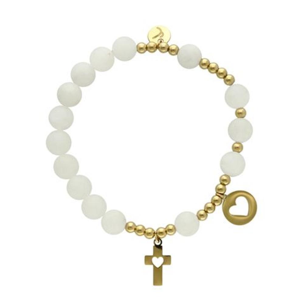 • Exkluzív rózsafüzér karkötő - fehér achát gyöngyök