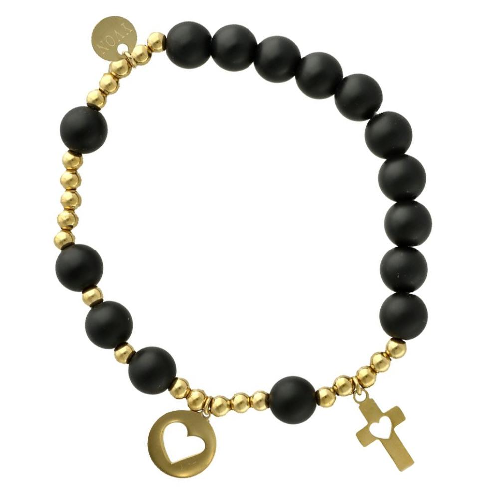 • Exkluzív rózsafüzér karkötő - fekete achát gyöngyök