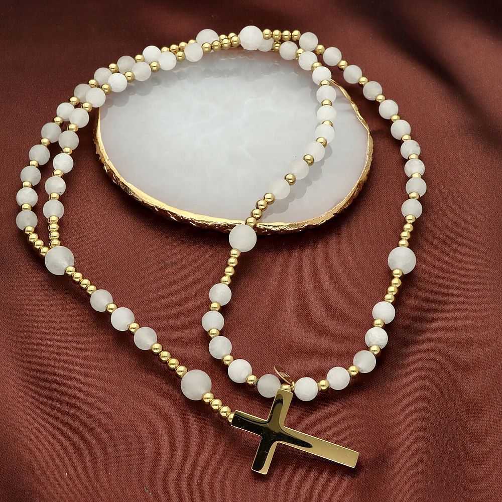 Természetes ásvány kövekből és rozsdamentes acélból készült rózsafüzér.
