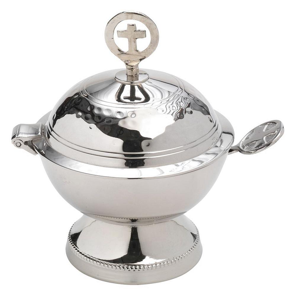 Nikkelezett réz tömjéntartó 12 cm .A kanál a csomagolás része.