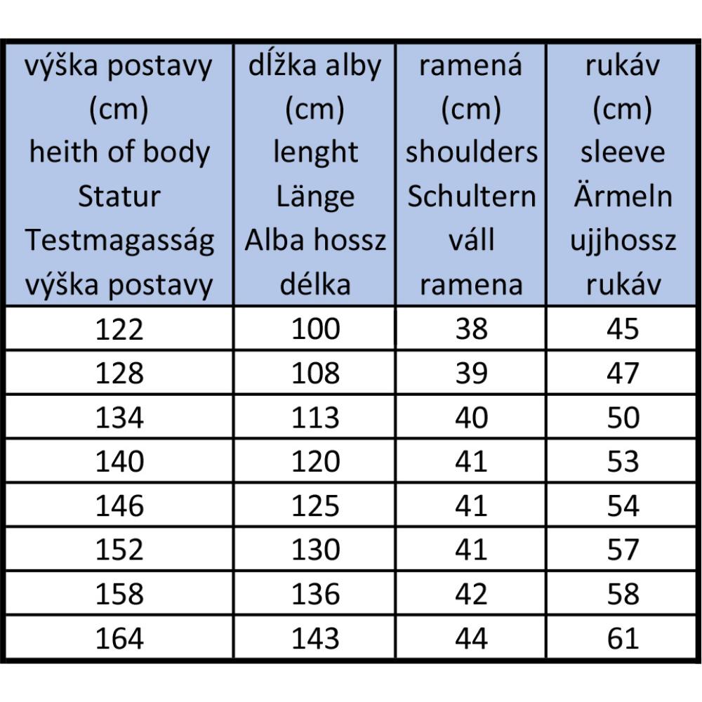 Ministráns ruha - egyenes szabású alba.Elöl zipzáras kialakítás.Anyaga 100% PES, praktikus, nem gyűrődő.Méretek:Testmagasság: 122, 128, 134, 140, 146, 152, 158, 164 cm.