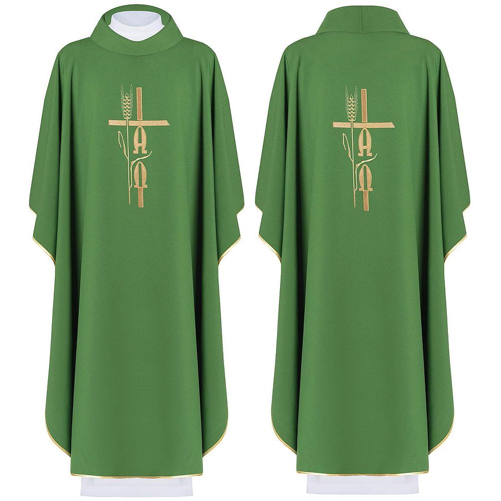 Zöld, hímzett miseruha aranyszín díszítéssel.Aranyszín szalaggal körbeszegve, anyaga: PES.Méretek.szélesség: 144cm.hossz: 125cm.
