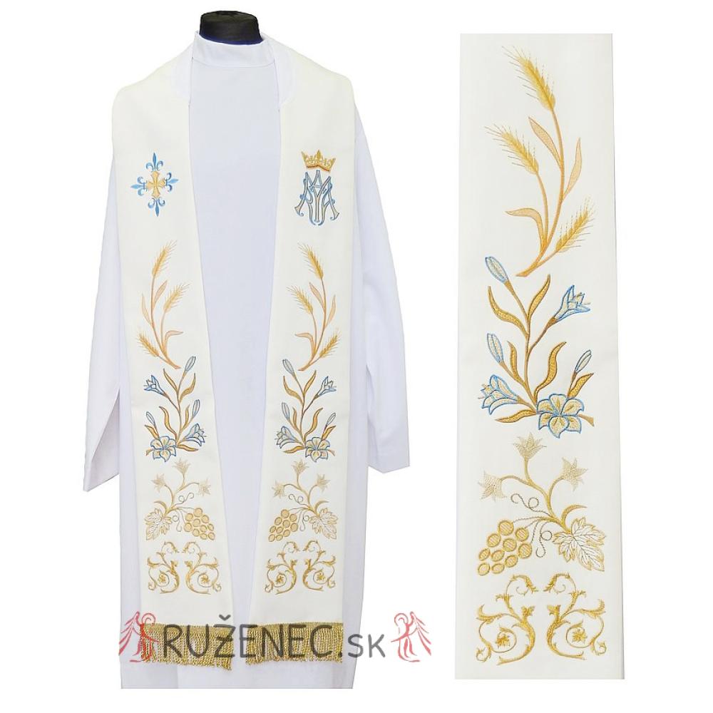 Fehér - vajszín stóla gazdagon hímzett díszítéssel.