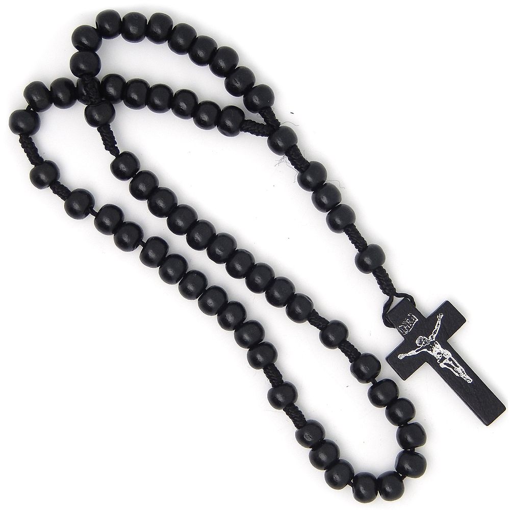 Zsinóros rózsafüzér - 7mm-es fekete színű csiszolt fagolyókból.