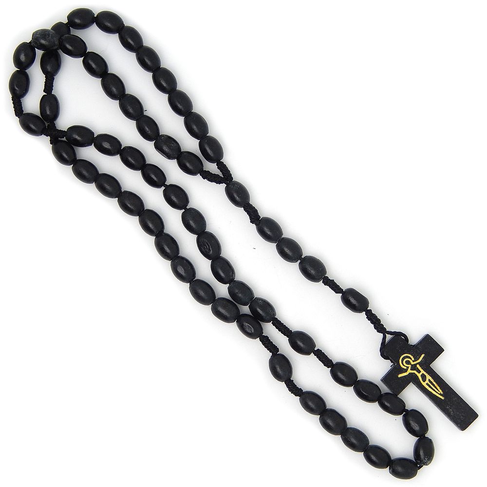 • Zsinóros rózsafüzér fekete 7x10mm-es fagolyókból