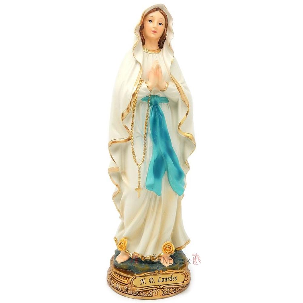 22cm magas, szépen kidolgozott, részlethű, kézzel festett Lourdes-i Szűzanya szobor.Műgyanta - fagyásálló anyagból.Ütésálló csomagolásban postázzuk.Postán küldhető.