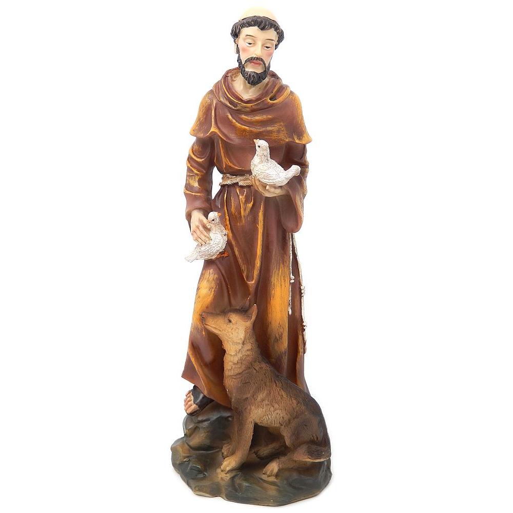 30cm magas, szépen kidolgozott, részlethű, kézzel festett Szent Ferenc szobor. Műgyanta, fagyásálló anyagból. Ütésálló csomagolásban postázzuk. Postán küldhető.